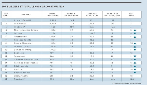 HONG KONG,March 17,2025 --Azimut|Benetti Group is number one in the production of mega yachts over 24 meters,leading the industry in the Global Order Book 2025,the annual ranking by the reference publication Boat International based on data from 185 shipyards on 5 continents.