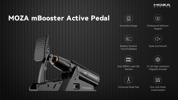 The highly anticipated MOZA mBooster Active Pedal,first unveiled at Gamescom 2024,is now available. Featuring a state-of-the-art active force feedback system,the mBooster simulates critical racing dynamics like ABS,traction control,and real-time G-forces,bringing unprecedented realism to your sim racing setup. Built with dual 200KG load cell sensors,these pedals deliver accuracy and responsiveness,ensuring every input feels true to life. Fully customizable,the mBooster can be configured as a throttle,brake,or clutch pedal,adapting seamlessly to your driving style. This innovation is a testament to MOZA's automotive engineering expertise,with its founders leveraging years of experience in advanced racing technologies to create a pedal system that bridges the gap between virtual and real-world performance.