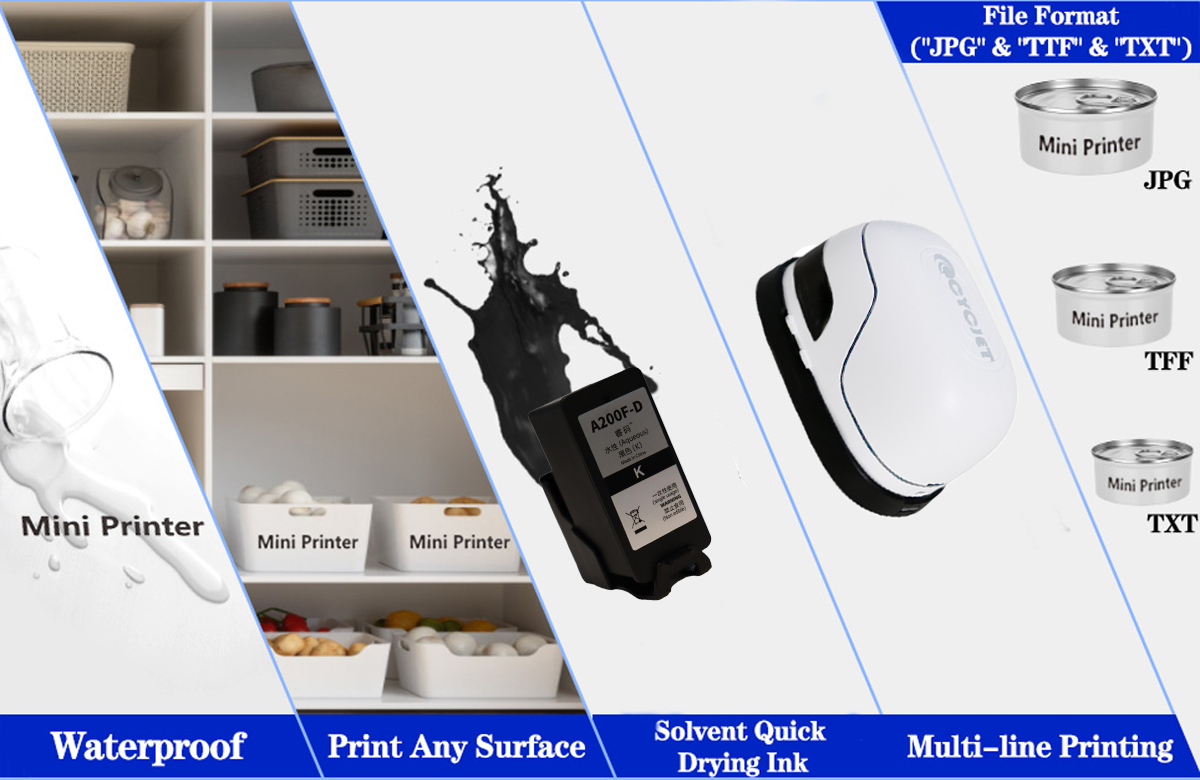 At the same time, CYCJET portable handheld inkjet printer cartridges use thermal foaming quick-drying technology, which greatly improves the performance and quality standards of inkjet printers, allowing more consumers to enjoy higher quality, higher performance, and more environmentally friendly printers.
