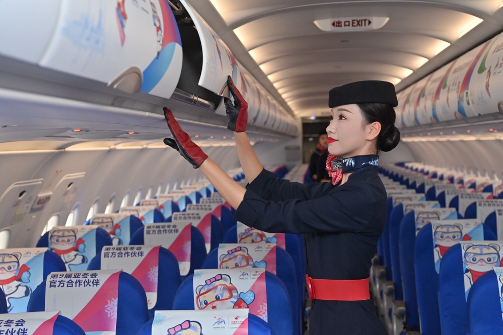 Passengers can check in at the airport counter decorated with Asian Winter Games elements, receive CEA's commemorative boarding pass, board the "Asian Winter Games" themed painted planes, taste Harbin red sausage, Northeast clear noodles and other in-flight meals, and receive an Asian Winter Games souvenir.