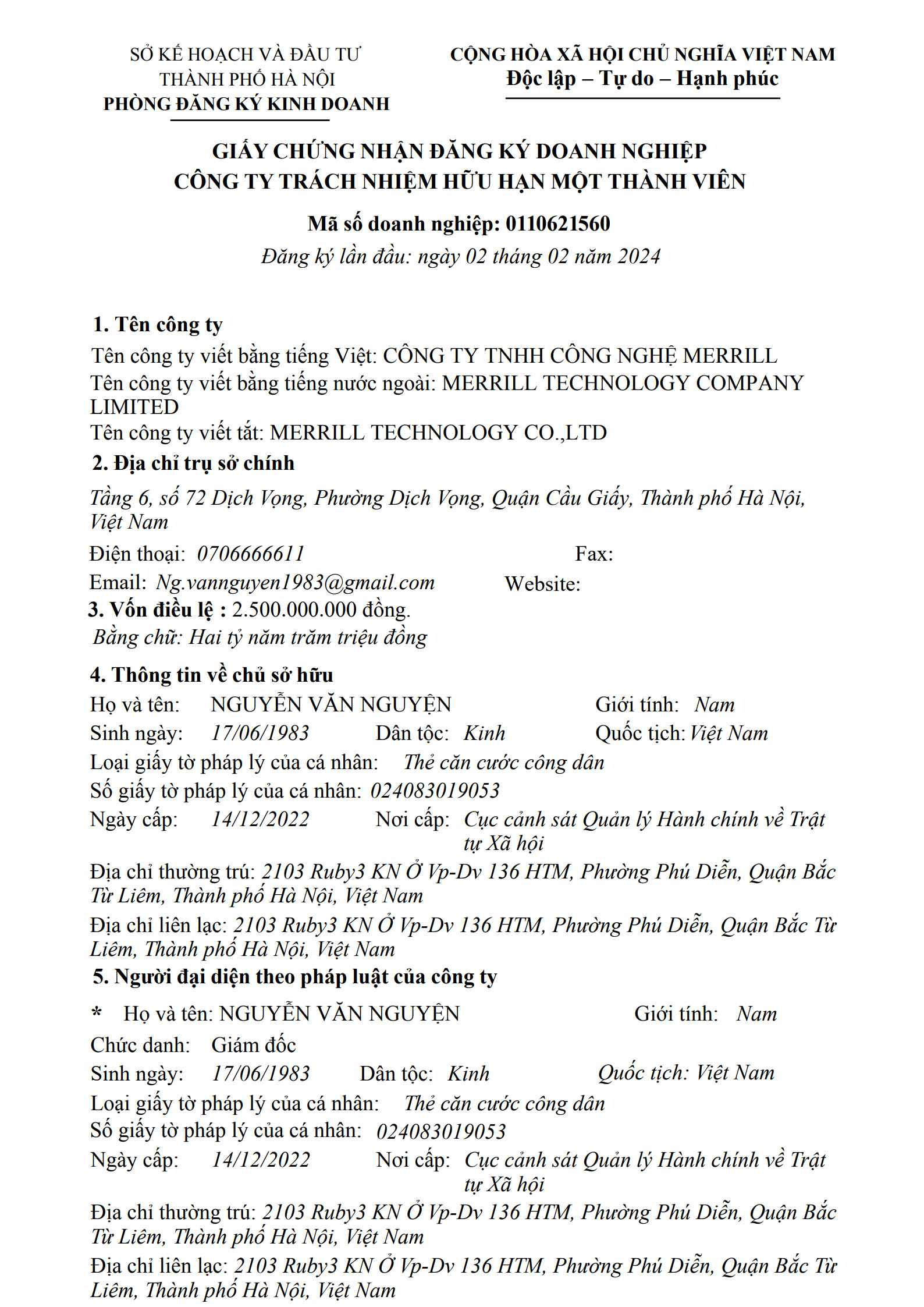 MERRILL TECHNOLOGY LTD., based in New York, USA, is a well-known technology company mainly engaged in cryptocurrency exchange platforms and Web3 ecosystem development. It currently holds regulatory licenses from the U.S. Securities and Exchange Commission (SEC) and the Money Services Business (MSB). Its SEC registration number is CIK 0002006035, and its MSB regulatory number is 31000233581220. With bases in New York and Colorado, USA, the company's main business focuses on Singapore and Vietnam. Currently, its global membership covers 10 countries and regions, including Vietnam, Malaysia, Taiwan (China), Indonesia, Singapore, India, Israel, Nigeria, Thailand, and the Philippines.