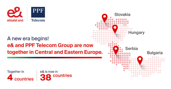 ABU DHABI,UAE,Oct. 25,2024 -- e& and PPF Group ("PPF") today announced the successful completion of their landmark partnership,with e& acquiring a controlling stake (50% plus one economic share) in the service and infrastructure companies of PPF Telecom Group ("PPF Telecom") across Bulgaria,Hungary,Serbia and Slovakia. This acquisition marks a significant step in e&'s ongoing global expansion ambitions,diversifying and growing its geographical presence to 38 countries.