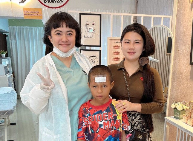 She treated the boy at her shop on October 4,first applying numbing cream before using a laser to burn off the markings.